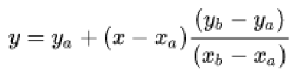 En general, en la interpolación lineal se utilizan dos puntos, (xa,ya) y (xb,yb), para obtener un tercer punto interpolado (x,y) a partir de la siguiente fórmula: